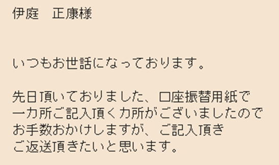 入っていたのは「訂正用の用紙」と「返信用の封筒」でした。